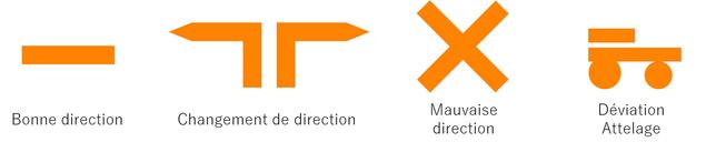 - Bonne direction : lorsque vous voyez ce signe, ne changez pas de direction car vous êtes sur la bonne voie.