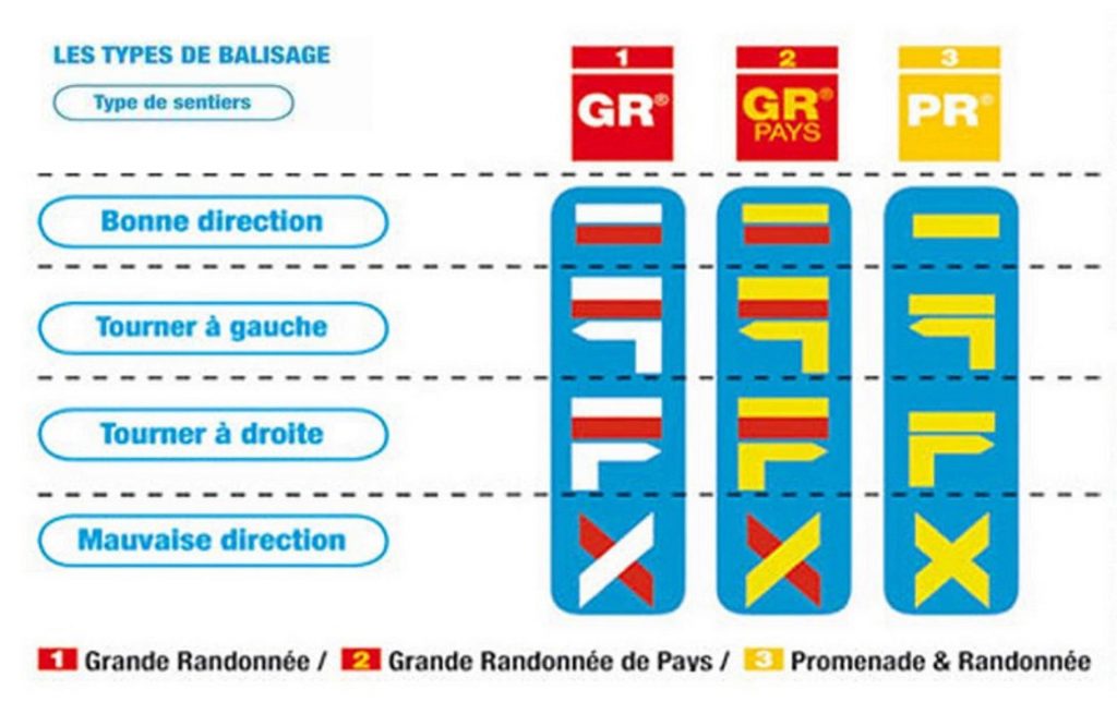 Voyons maintenant plus en détails comment reconnaître ce fameux balisage national. Dans les faits, celui-ci se divise en 3 codes différents :
