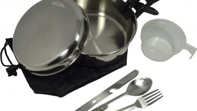 Totalement empilable et antiadhésif, ce set fourni entre autres avec une théière excelle spécialement dans sa capacité à faire bouillir de l’eau très rapidement (en seulement 2 minutes et 30 secondes). Pour un voyage de camping ou randonnée à deux, voire à trois, il est plus que prêt à vous servir fidèlement.