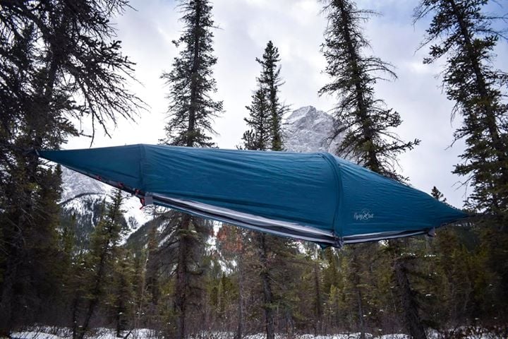 Cette tente suspendue n’est pas qu’un simple hamac de randonnée, contrairement à ce que peut nous faire croire son apparence.