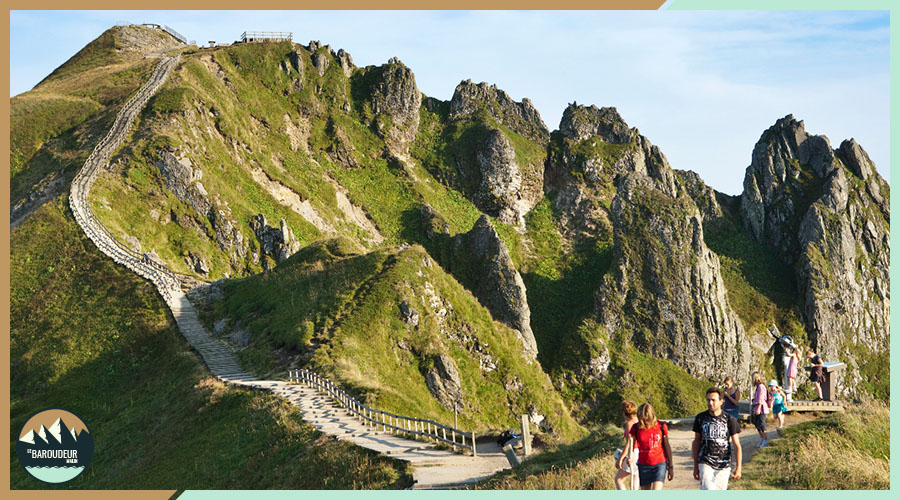 Ce sentier escarpé et vertigineux le long des crêtes du Puy de Sancy en vaut le détour. Même si cette randonnée est assez difficile, les autorités du domaine ont mis en place des dispositifs pour assurer la sécurité des randonneurs. Arrivés au point culminant du Puy de Sancy, 1885 mètres, le plus haut sommet du massif du Mont-Dore offre un spectacle imprenable sur toute la vallée alentour.