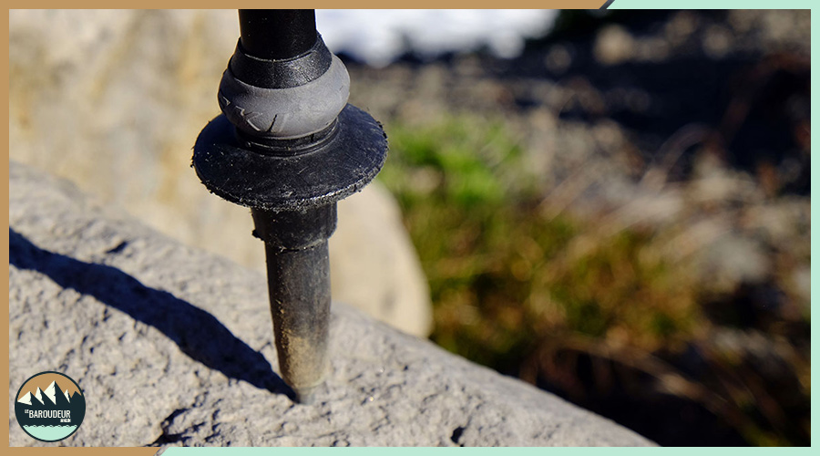 La plupart des bâtons sont livrés avec des rondelles amovibles (une large section circulaire en plastique, comme sur les bâtons de ski) près des pointes. Leur but principal est d’empêcher les bâtons de s’enfoncer trop profondément dans des conditions neigeuses. Nous pensons que les rondelles de bâtons sont généralement inutiles pour la randonnée, sauf si nous sommes sur des sentiers enneigés.