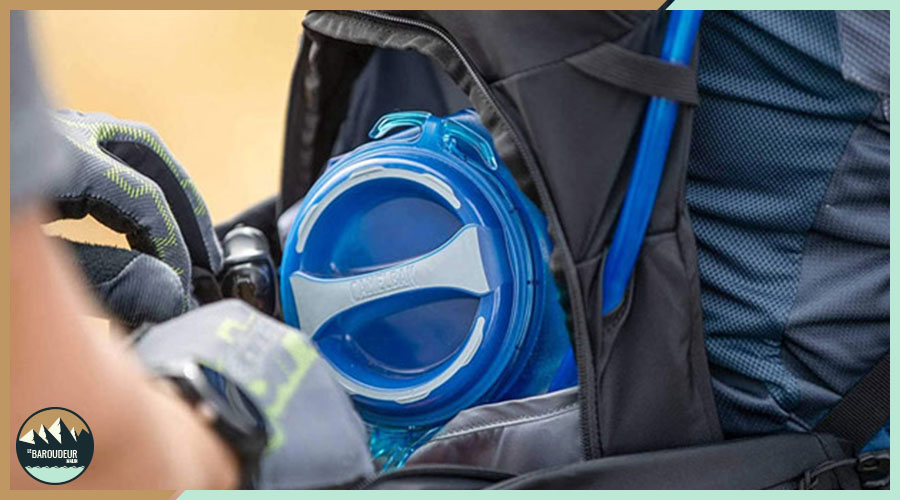Il s’agit d’une gourde en plastique alimentaire souple, munie d’un tuyau pour boire. Ces poches à eau ont pour avantage d’être pratiques. En effet, elles se glissent facilement dans le sac et vous pouvez vous hydrater constamment sans pour autant vous arrêter, ouvrir votre sac, etc. Si vous décidez d’opter pour ce réservoir d’eau, deux solutions s’offrent à vous. Vous pouvez soit vous orienter vers l’achat d’un sac de randonnée avec poche d’eau intégrée, soit acheter une poche d’eau en annexe et la placer vous-même dans votre sac. En fonction des modèles, les gourdes d’eau peuvent contenir jusqu’à trois litres d’eau. À côté de ces nombreux avantages, la poche d’eau présente quelques inconvénients. Tout d’abord, elle se nettoie difficilement et son entretien doit être régulier et méticuleux pour éliminer toutes les bactéries présentes. De plus, on a du mal à suivre l’évolution du stock d’eau, ce qui peut être problématique dans une situation où l’on doit économiser l’eau.