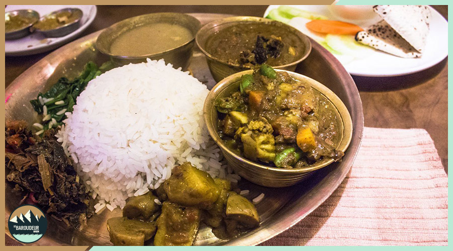Les options de nourriture dans les maisons de thé sont généralement simples mais suffisantes. Les menus sont à peu près les mêmes dans la plupart des maisons de thé avec le copieux et délicieux dhal bhat comme aliment de base omniprésent. Vous trouverez également couramment des momos (boulettes), des pâtes, des plats de riz, des soupes, des pizzas et, dans certains endroits, des steaks de yack et des tartes aux pommes. Un repas chaud maison sera toujours un plaisir à la fin d’une longue journée sur le sentier.