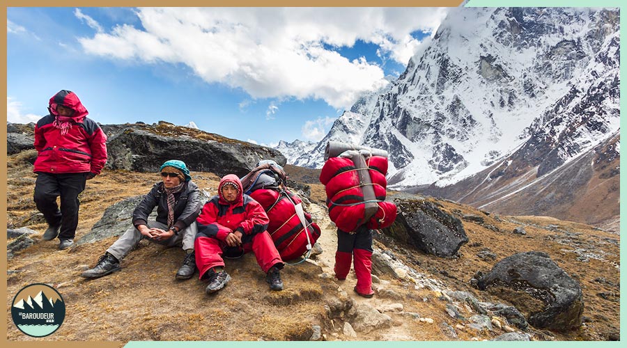 Les porteurs sont aussi utiles et très courants le long des sentiers au Népal. Les porteurs ont pour tâche de transporter de l’équipement lourd, et donc vous n’aurez pas à le faire. Ceci est particulièrement bénéfique pour les randonneurs plus âgés, les randonneurs débutants ou les groupes avec enfants. Rappelez-vous, même si vous décidez de faire du trekking avec un porteur, qu’il est très important de garder le poids de votre équipement au minimum. Les porteurs ont un travail absolument éreintant, alors s’il vous plait, ne leur compliquez pas la tâche.