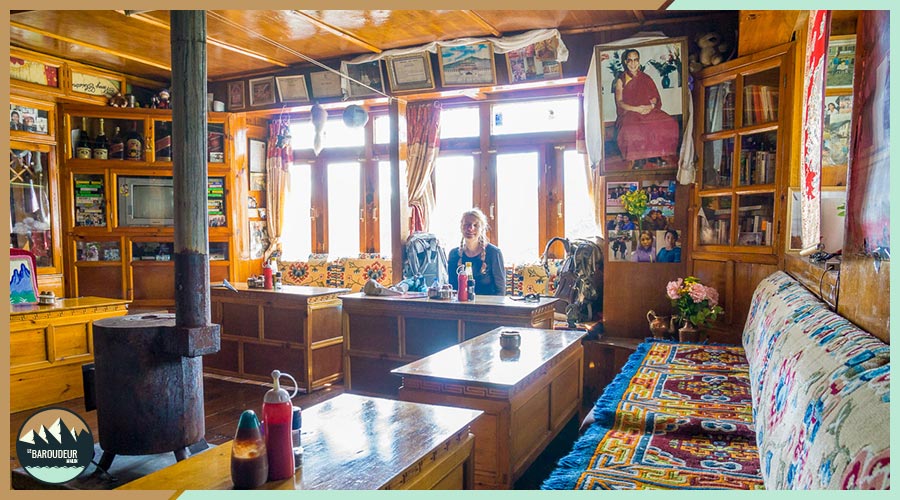 Lors d’une randonnée de ce type, vous dormirez tous les soirs dans l’une de ces guesthouses et vous mangerez presque tous vos repas dans des maisons de thé. Les hébergements sont généralement simples, confortables et très abordables. Les hôtes s’attendent à ce que vous y preniez vos repas, ce qui est l’une des raisons pour lesquelles les chambres sont si bon marché. Les maisons de thé vendent également des collations, des bonbons, des douches chaudes, de la bière, et parfois même un wifi assez décent.